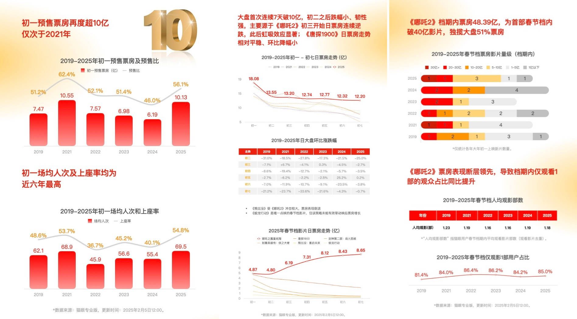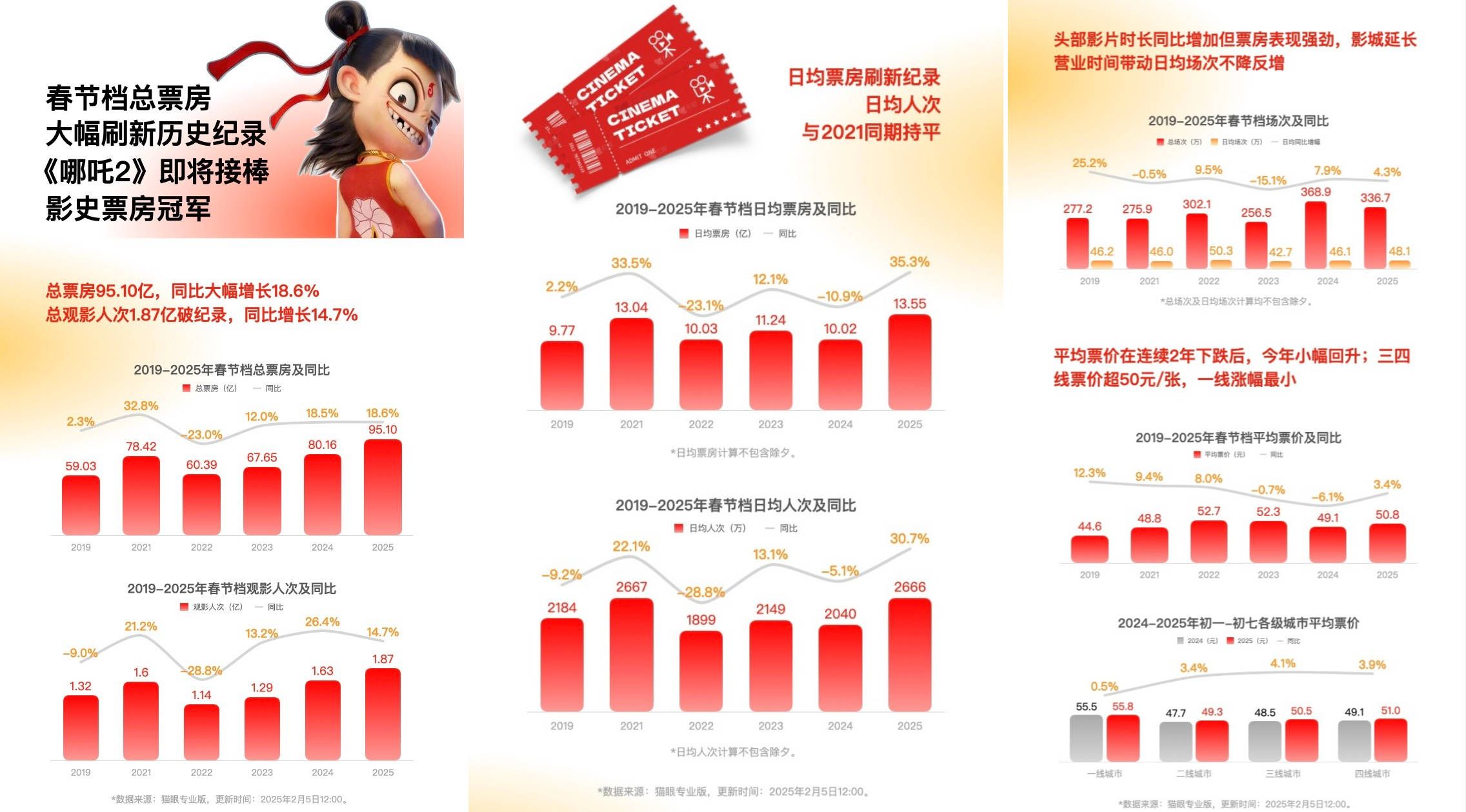 猫眼研究院发布2025春节档数据洞察:总票房95.10亿大幅刷新影史纪录