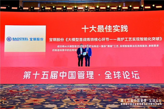 近年来,宝山钢铁股份有限公司(以下简称“宝钢股份”)积极紧跟时代步伐,在管理实践中将AI大模型首次应用于高炉冶炼这一复杂“黑箱”工艺,实现智能算法在流程复杂、参数繁多的制造场景中的应用突破。其在管理方向的探索实践为长流程重工业数智化转型提供了示范样本,成功获得2025年度中国企业管理最佳实践榜“十大最佳实践”。